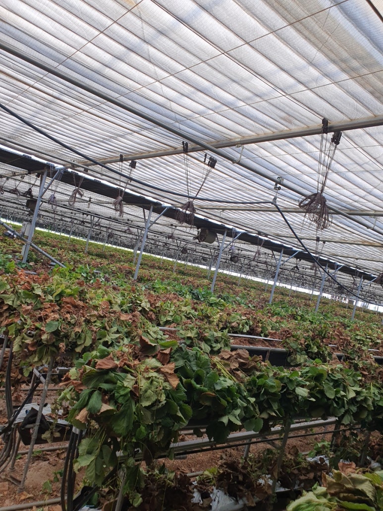 수확이 끝난 딸기 모종을 정리하고, 토양을 소독하고,
