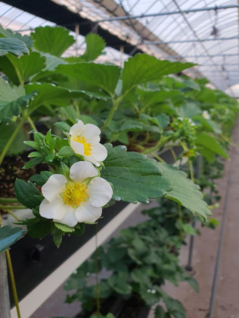 봉농원 명인딸기농장에 드디어 새하얀 딸기꽃들이 만발했습니다.