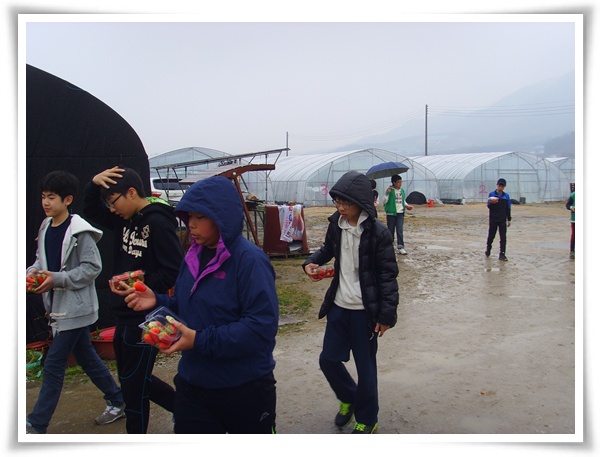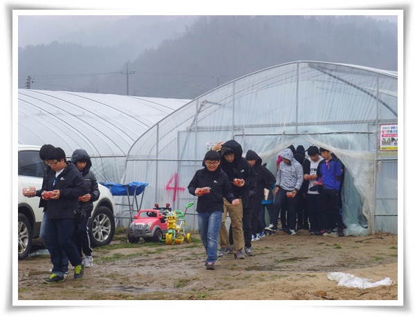 한참 짖궂은 남자중학생들이라 가끔 딸기를 따서 친구들에게 던지기도 하더군요.