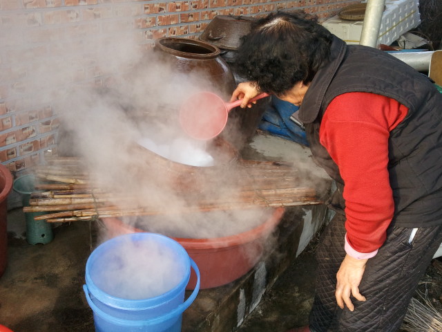 녹이고 계시는 어머님..... 오늘은 어머님곁에서 일을 도우면서 단디 배웠습니다.