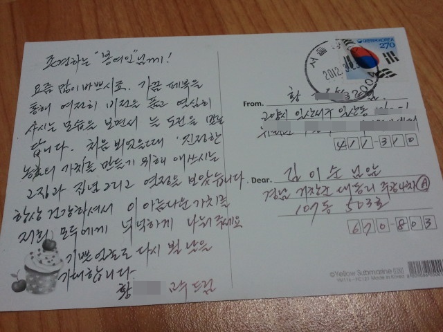 마음을 담은 손글씨의 엽서는 나의 눈에 쏘옥 들어왔다.