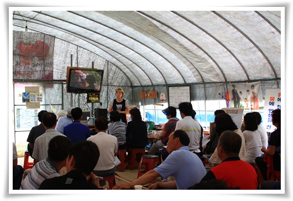 비록 변변한 교육장이 없어서 딸기작업실에서 오시는 분들을 맞이하고 있어서