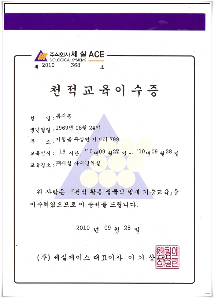 천적 교육 수료증