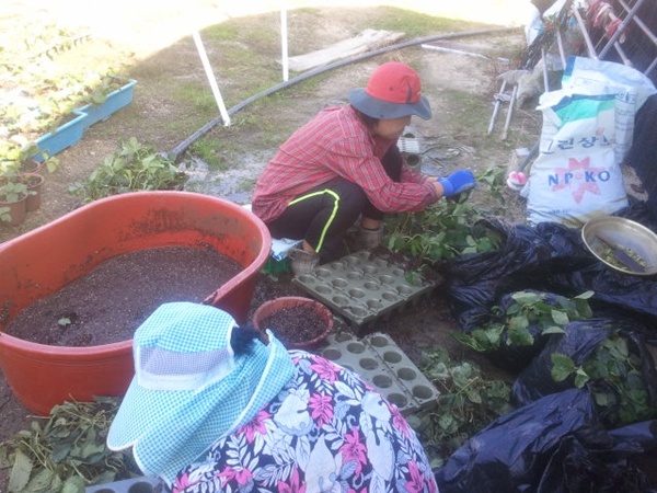 노잎제거 작업은 딸기모종에게 새로운 옷을 갈아입히는 일 같다고..