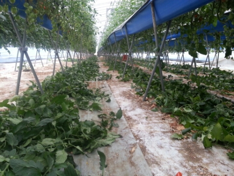 그리고는 토마토 수확하기 쉽게 잎제거 작업을 하였다.
