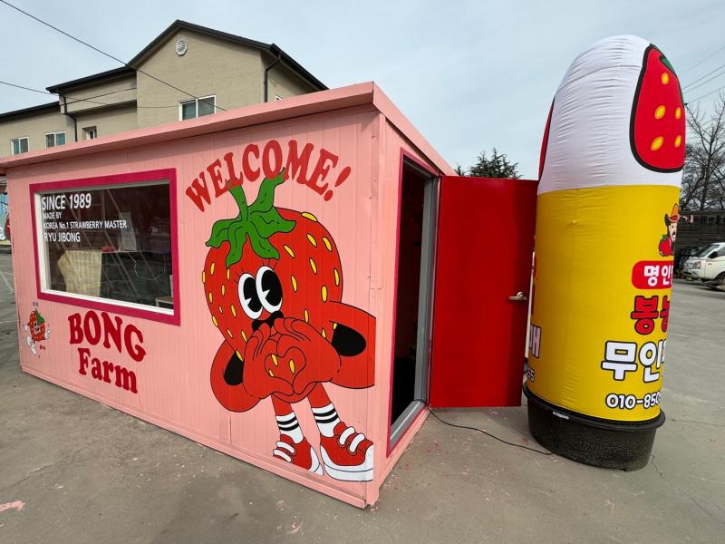 2024년 3월두 딸아이가 뚝딱뚝딱 하더니봉농원에 예쁜 무인판매대를 만들어주었습니다.참 이쁘죠??이제 우리가 없어도 딸기를 가져가시면 됩니다.당일 수확한 딸기 늘 가져다 놓겠습니다.