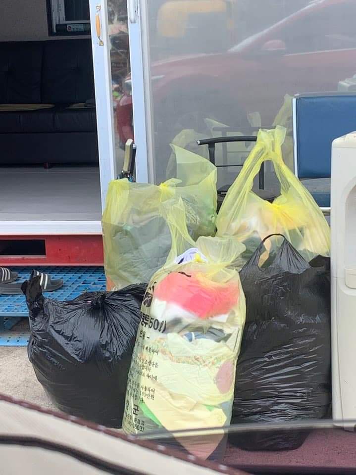 옷도 비우고(5묶음 3천원 받음) 직접 갖다주고 기름값도 못 건짐