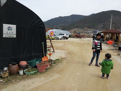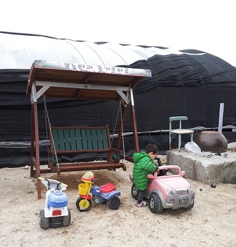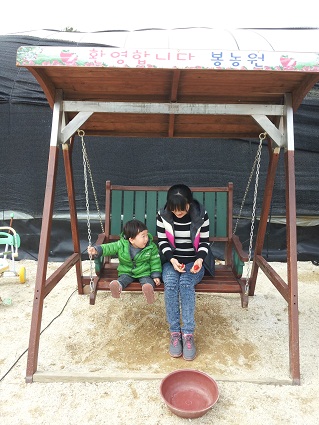 도착하자마자 봉농원 아이들의 것인듯한 자동차로 달려가는 아들입니다.