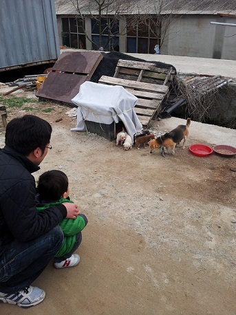 우리 차가 들어설때 사납게 짖던 강아지들. 가까이보니 새끼엄마였더라구요.
