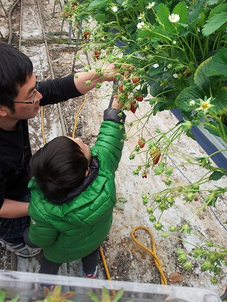딸기를 함부러 뜯지 않고 아버지랑 똑똑 이쁘게도 따네요.