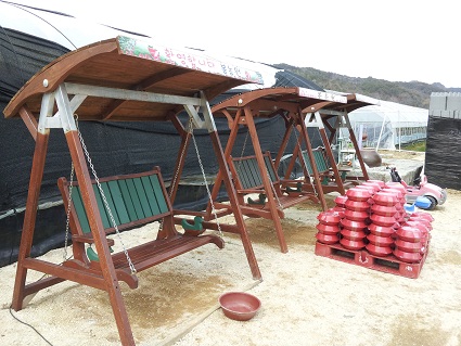그네의자 옆에 딸기가 한가득이었어요. 봉아저씨께서 대구 인터불고호텔에서 딸기뷔페에 쓰일 딸기를 가지러 온다하셨던게 기억났어요.