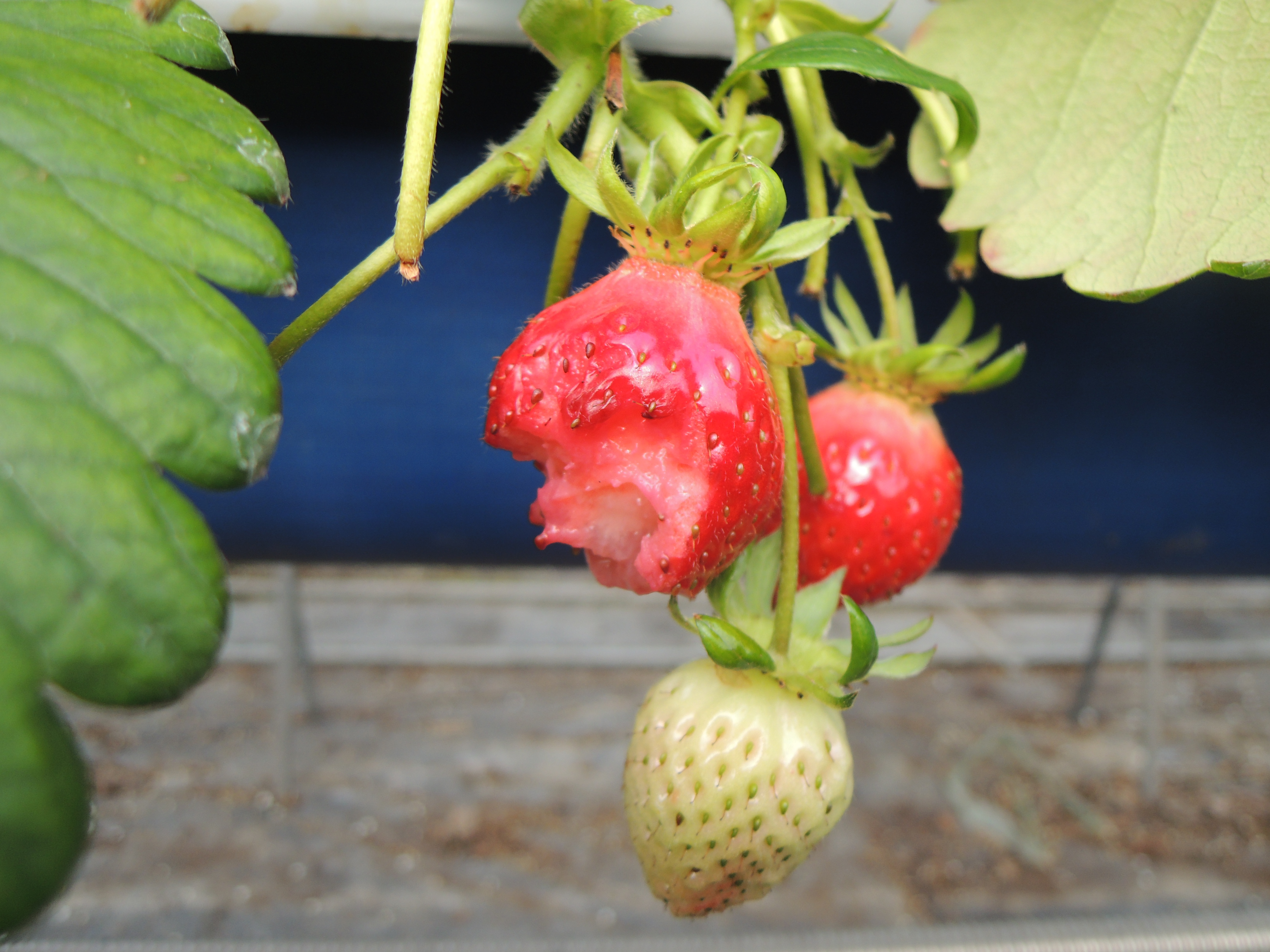 나중에 알고보니..이 새들이 하우스안에 기어코 들어와서 이곳 저곳 기웃거리면서 딸기마다 쪼아먹고 난동을 피우는 난폭자였습니다.