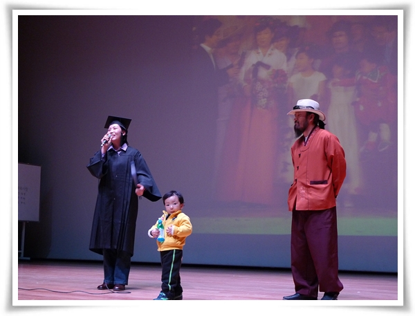 몰래 써온 편지를 읽는동안 준비해간 영상을 보고 있는 신랑과 막내..