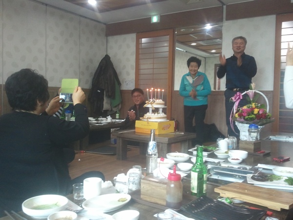 어머님 칠순생신을 축하하러 모두들 이렇게 모였습니다.