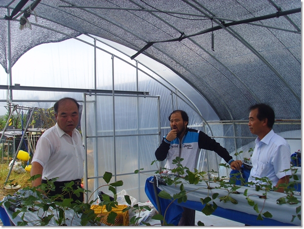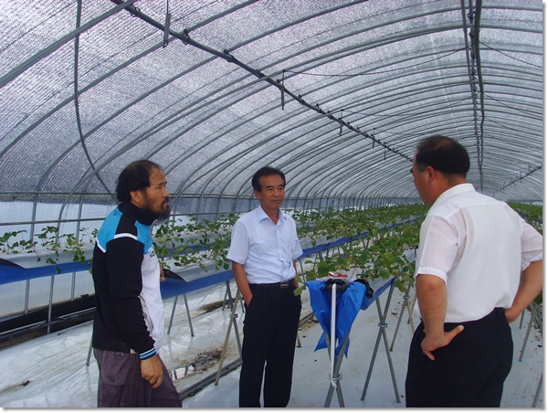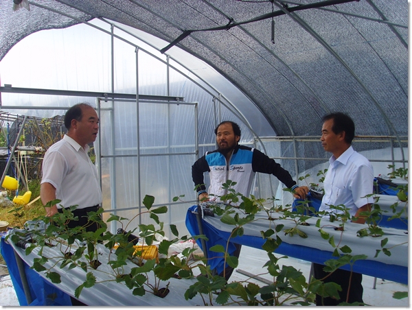딸기고설재배에 대해서 많은 관심을 보이셨으며
