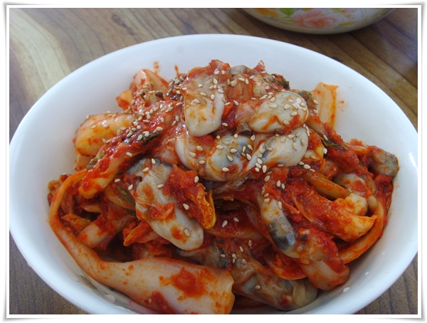 바로 먹을 김치는 이렇게 굴을 넣어서 살짝 버무려서 준비했습니다.