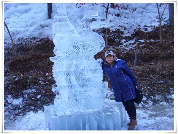 조금 위로 올라가니 얼음조각이 전시되어있는 전시장이 나왔습니다.