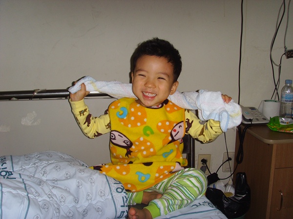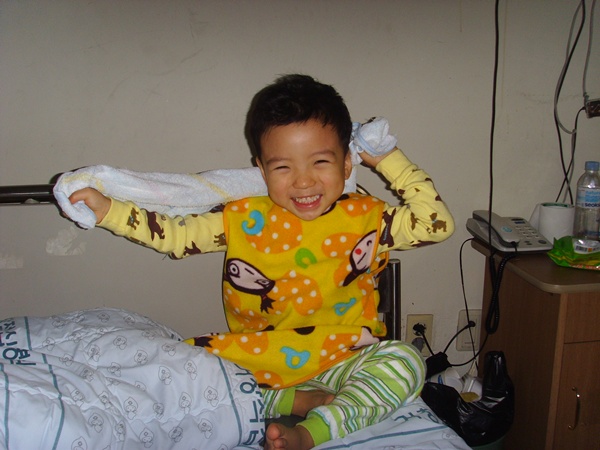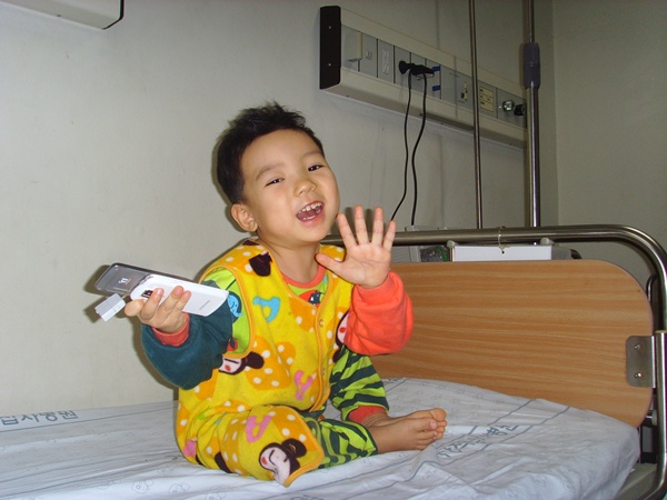 4일만에 링겔주사를 빼주니 아이가 날아갈듯이 행복해합니다.