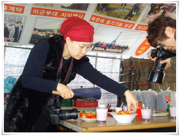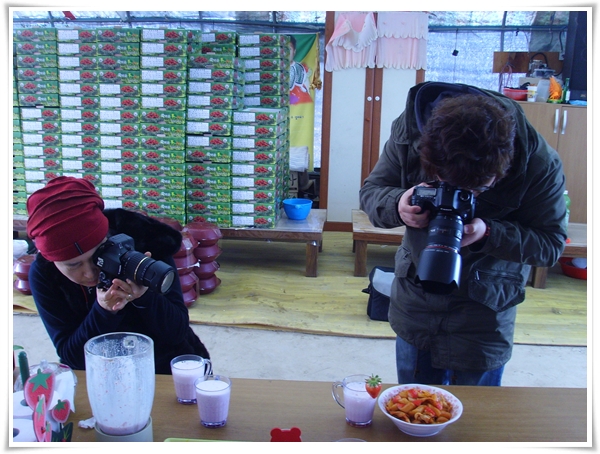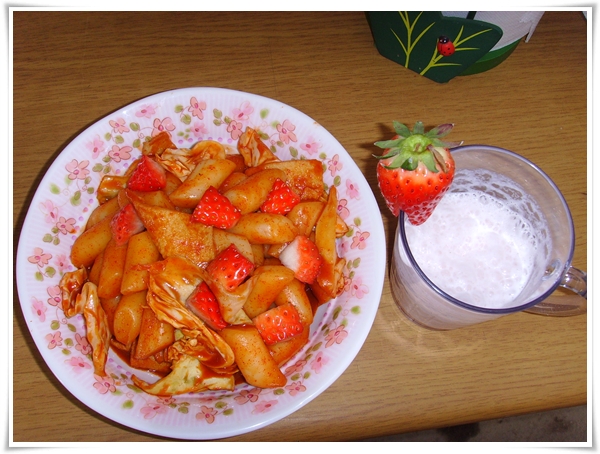 딸기떡볶이와 딸기쉐이크를 바로 카메라에 담으시고..