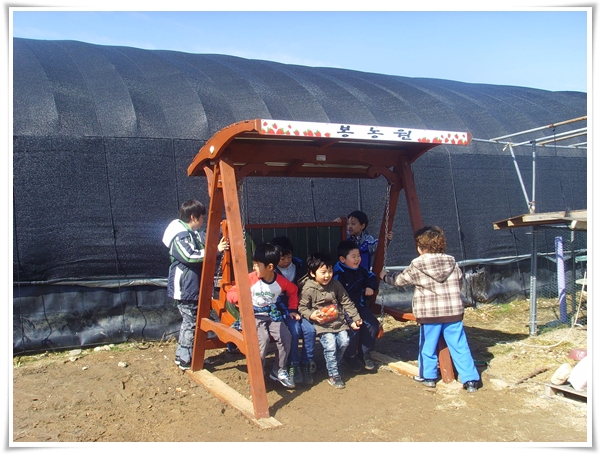 딸기따기 체험을 마치고 신나게 나무그네도 타고...