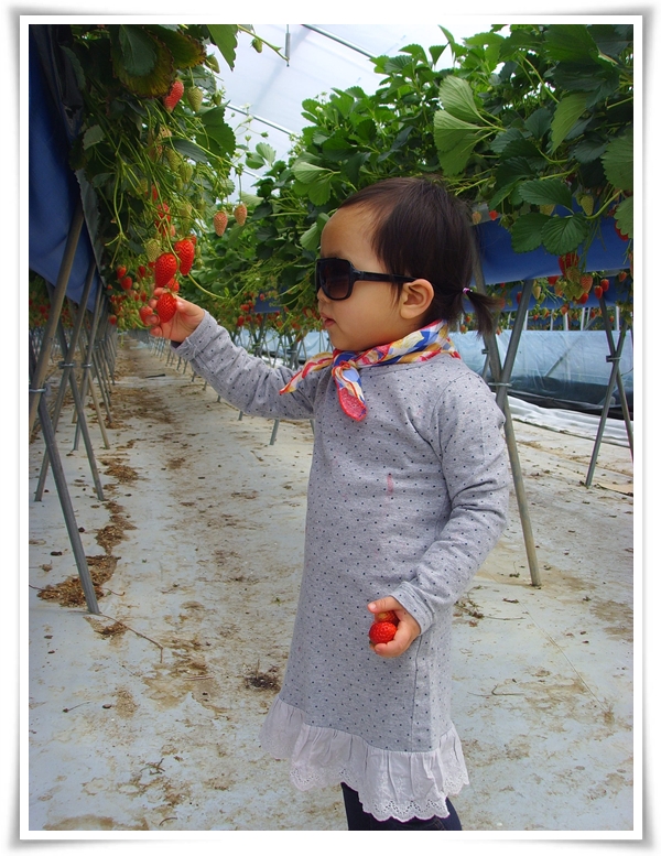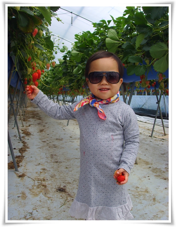 자기 얼굴에 꼬옥 맞는 선글라스를 쓰고 신나게 딸기따기를 합니다.
