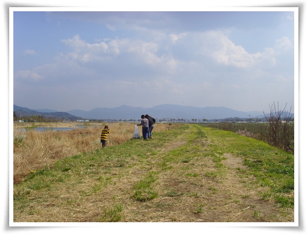 마침 주말이라 놀러온 조카 태영이도 고모의 명령에 딸아이들과 쓰레기줍기에 동참..