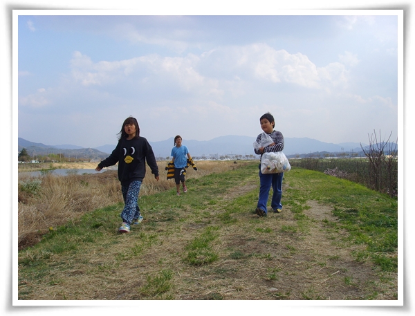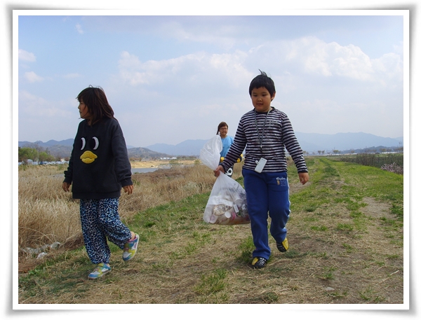깨끗한 공기를 마시면서 쓰레기를 주운 아이들도 어느새 기분이 좋아졌나보다.