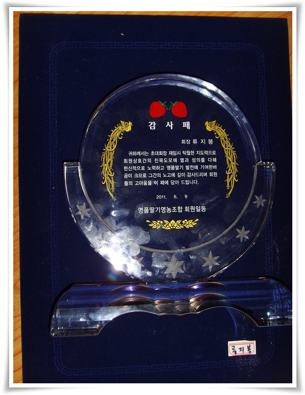 그동안 명품딸기영농조합을 만들어서 이끌어온 봉털님께 새로운 임원진들의