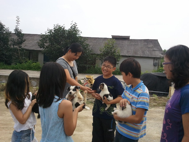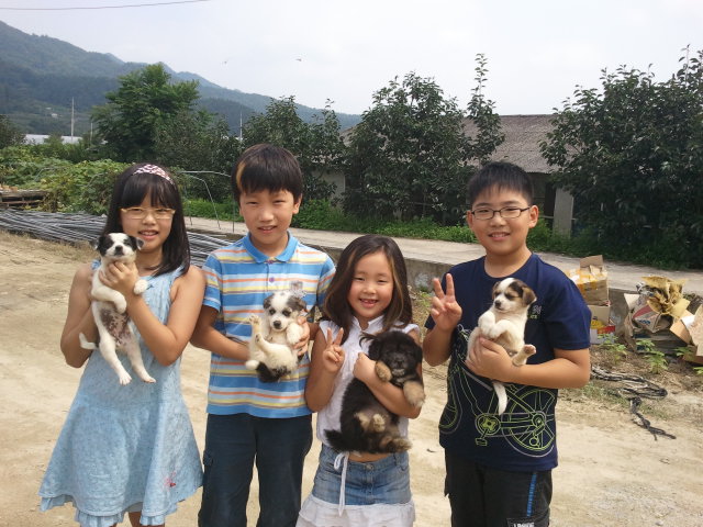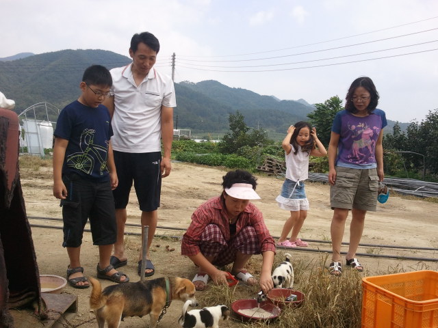 봉농원에 도착하자마자 아이들은 서로 자신들이 좋아하는 강아지를 안고