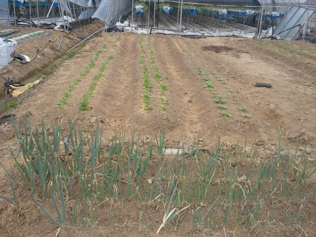 그 옆으로 작은 빈터에는 또 이렇게 파를 심어놓으셨다.