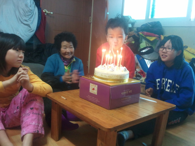 어머님은 오늘 손자,손녀의 생일축하노래와