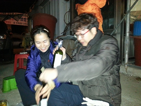 맛난 와인 먹으려고 행복한 미소를 지으면서 그 옆에서 거들고 있는 막내올케..