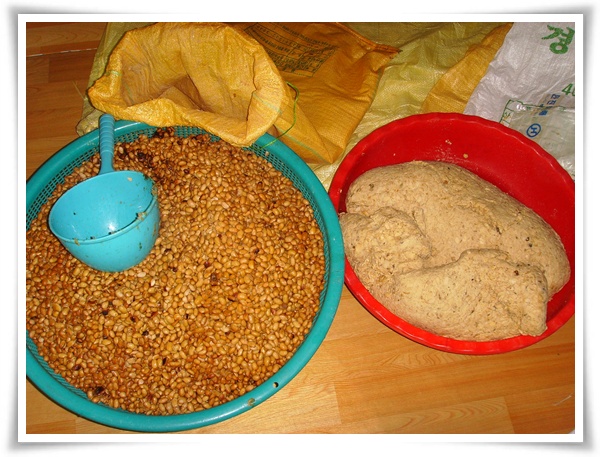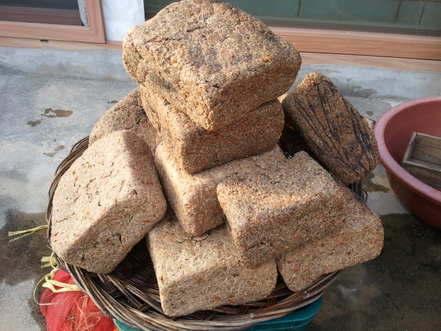 메주 한덩어리의 콩의 분량은 보통 2되정도가 됩니다.