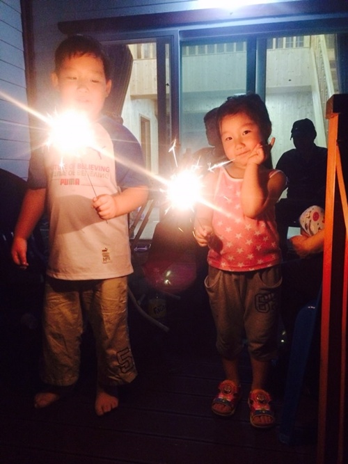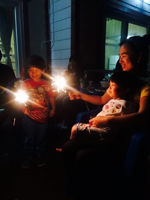 꼼꼼한 둘째동생이 아이들을 위해서 불꽃놀이 소품들을 준비해왔네요.