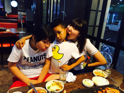 누나들과 함께하는 막내 표정이 압권이네요.