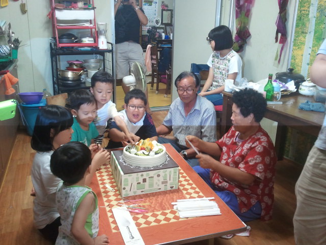 손자손녀들이 쪼르르 그 곁으로 다가간다..