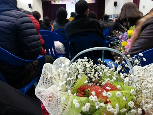엄마의 정성을 생각해서 딸기꽃바구니 들고 인증샷....