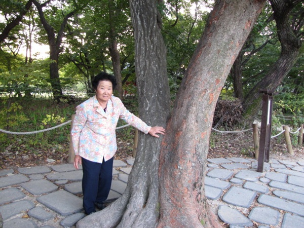 어머님도 나무가 신기한지 그 앞에서 포즈를 취해주십니다..