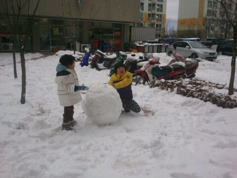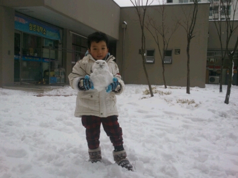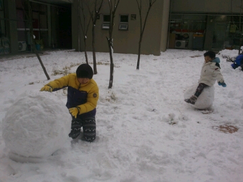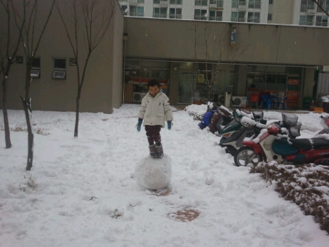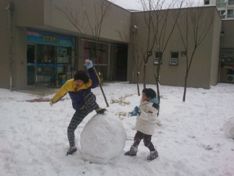 눈사람 머리위에는 막내가 얼렁 올라가더니