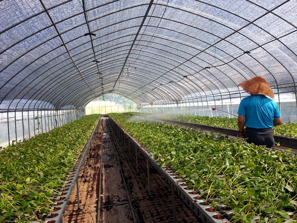 딸기모종들과 한포기 한포기 눈맞춤을 한다.