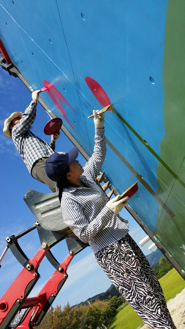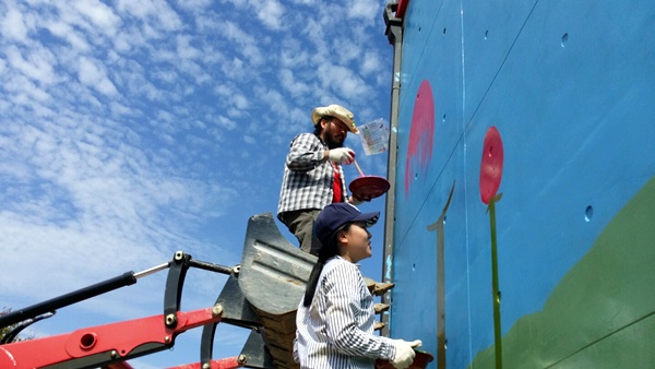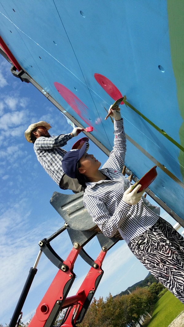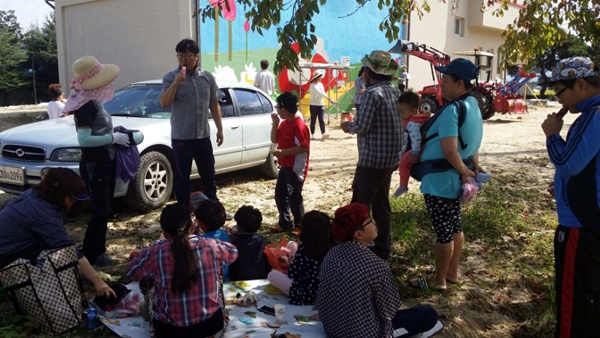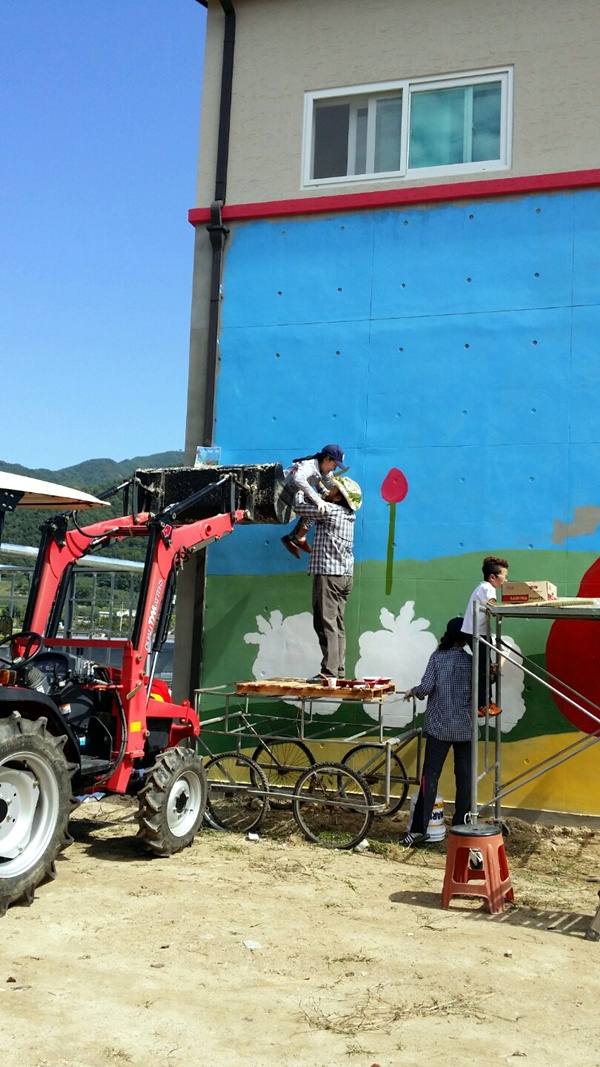 가족 모두 한마음이 되어 농장 벽화를 그렸습니다