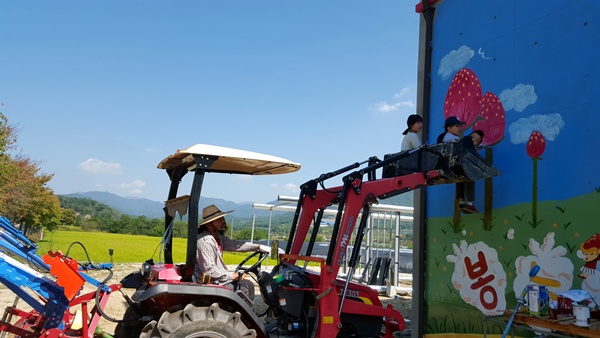 트랙터에서 내려올때는 "아빠 무서워"하고 어리광도 부리고..