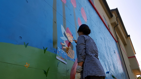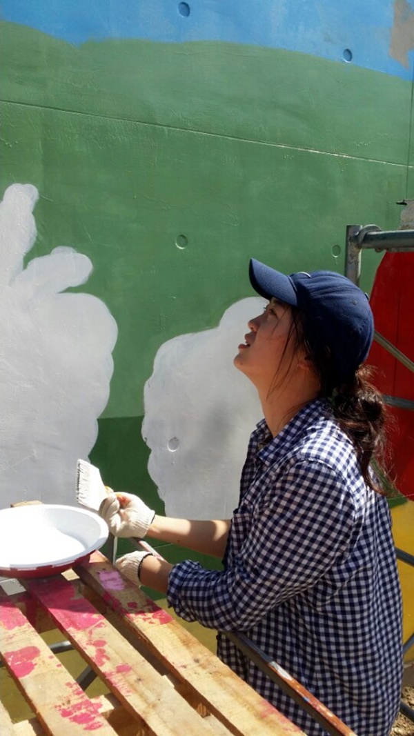 밑그림을 미리 그려와서 훨씬 벽화를 그리는데 수월했습니다.