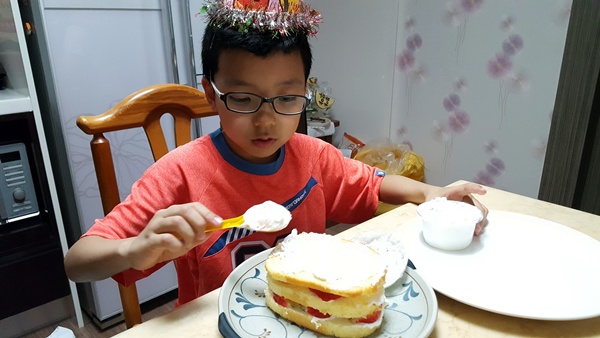 막내랑 딸기케이크도 함께 만들고
