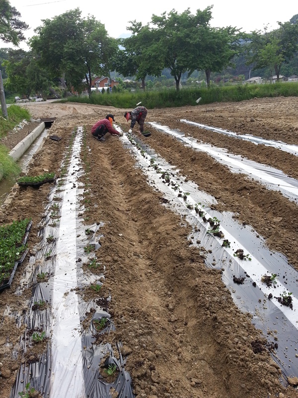 어머님과 함께 땅콩모종을 심기로 하였다.
