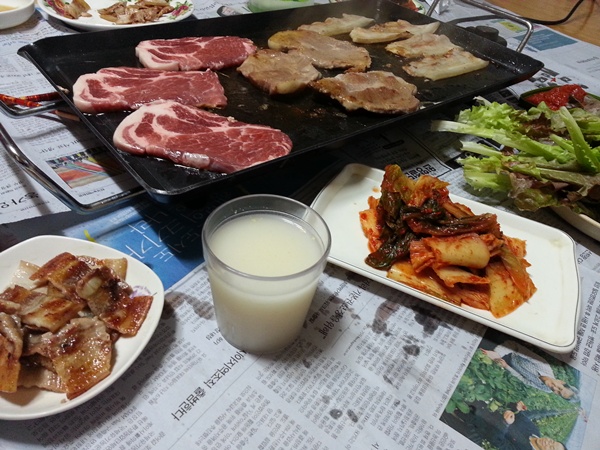 저녁은 어머님과 함께 농장에서 삼겹살을 구워먹었습니다.