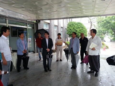 우리 경남 회원들 몇명이 함양군청 현관에서 기념촬영을 하였네요.