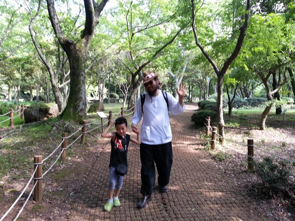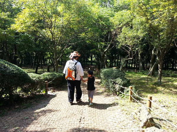 아빠랑 모처럼 손잡고 수목원을 거닐고 있는 막내..
