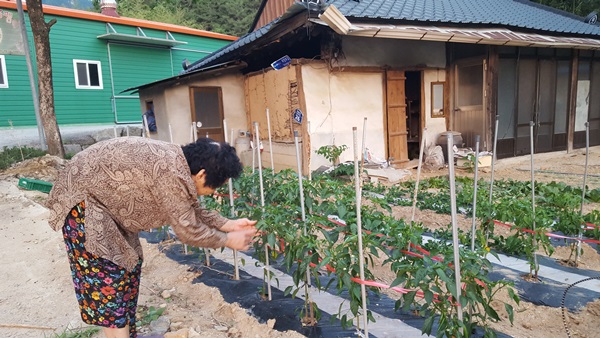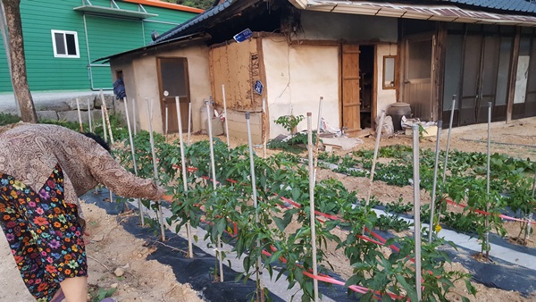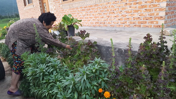 집으로 돌아오시면 어머님은 정성것 텃밭을 돌보신다.