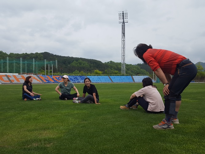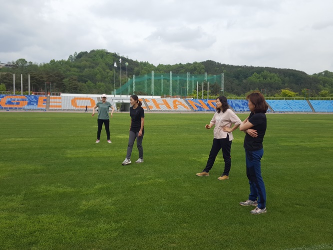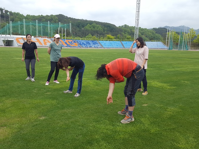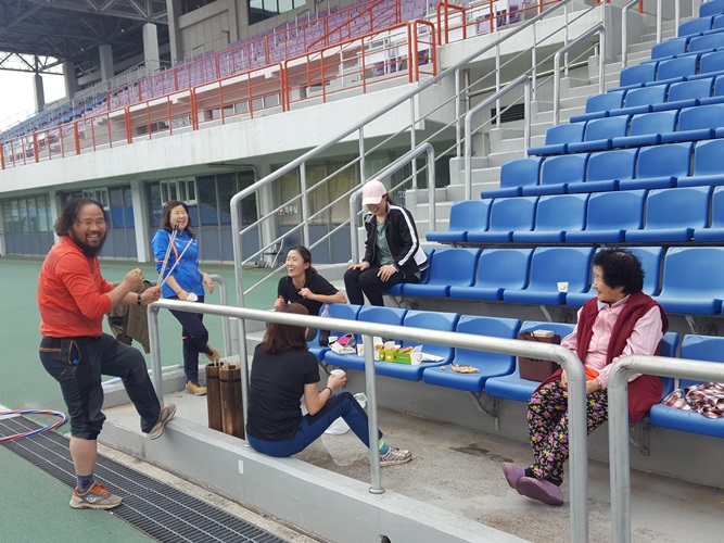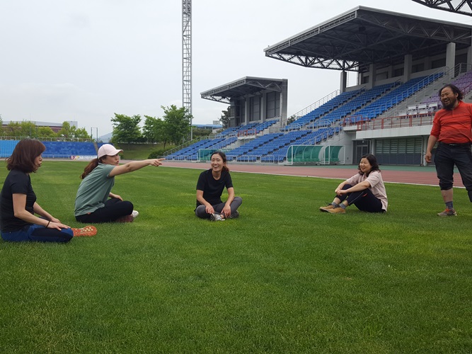 젊은 엄마들과 함께 스포츠파크로 달려가